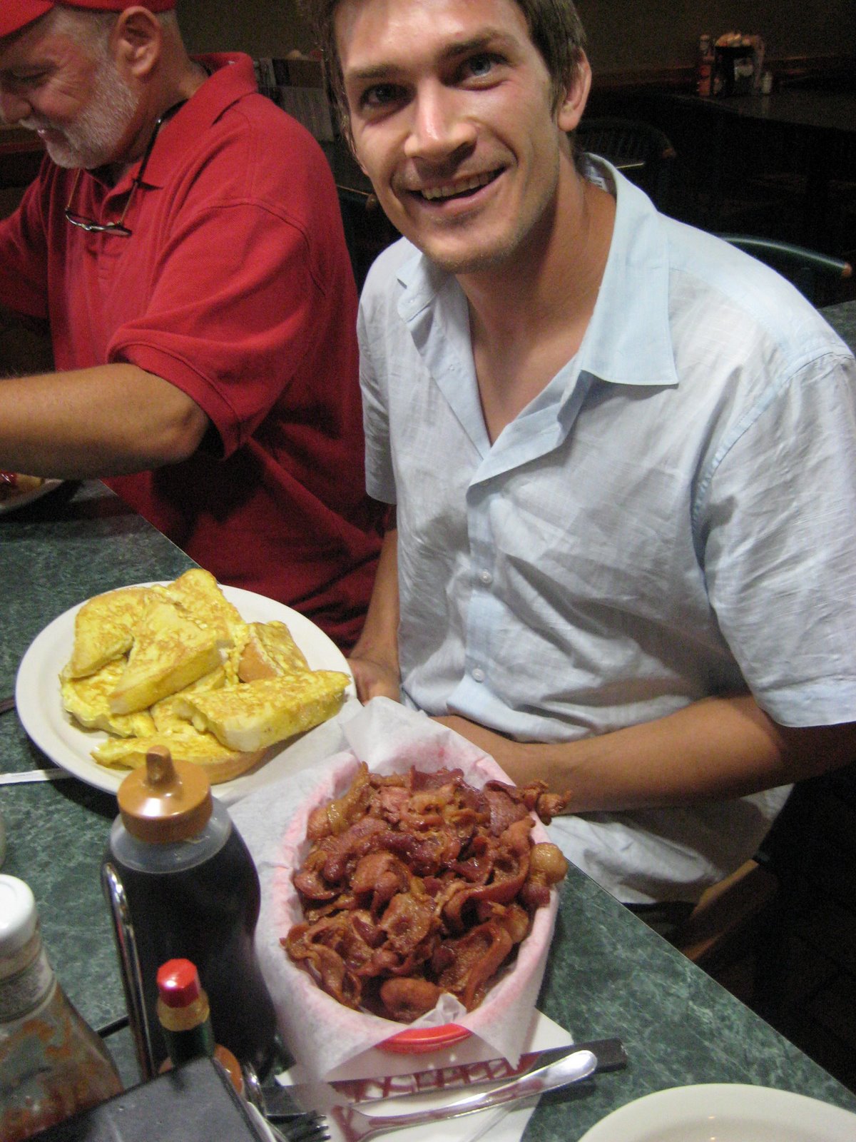 First, Tony’s side of bacon. On our trip up to northern MI we stopped at a Brich Run restaurant staple known as Tony’s. It is known for the huge portions and, in particular, their sides of bacon. Matt and I had heard about it all the way there from my mom and dad and it sounded too interesting to pass up. I think I have eaten there before but have no memory for these anecdotal events and a different taste in my mouth from those days to these. As we ordered I waited for the famous bacon to be added to someone’s meal or picked up as a side but everyone shied away from what had been the talk of the trip up there. I had to do it so I added a side of bacon to my order of french toast (see photo). It’s effectively a basket full of bacon, and by bacon they mean huge cuts of fried pig (no thinly sliced strips here). I got help from some of the others but we could not finish it.