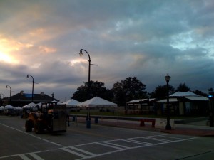 Two days ago I noticed a Robert Mondavi faux chateau set up on the grass, and yesterday when i was walking to the train the tent city was in full swing. This morning on my way in the setup was continuing and in front of the main stage there was a cooking segment being shot for the local news stations. This weekend hundreds, if not thousands, of people will be standing on it, enjoying foods, and taking in the view of the skyline, with no immediate cognition of the speed, noise and power beneath them. Pretty cool.Belw is the satellite image during the construction (the original width is the street plus the red sidewalk).