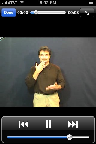 During the lesson I watch 4-5 short videos of this guy signing a word. Then I click on “continue” and am shown 4 choices for the meaning of that sign, along with a button for “Don’t Know.” Finally you are told whether or not you chose the correct meaning for the sign and you move on to the next movie. Over the course of several lessons you see words multiple times and reinforce your knowledge. A week after completing my week of lessons I go in to take a test and wee what I’ve learned.