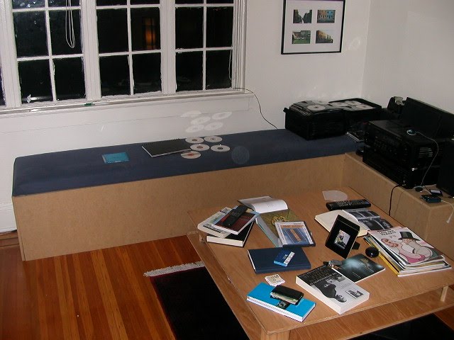 At least one piece of furniture that I made still exists in its original state (two actually): the cube end table with the built-in magazine rack seen on the shag rug in the picture above. However, I can’t claim credit for the design. I saw in at a furniture boutique outside a farmer’s market in Santa Monica.